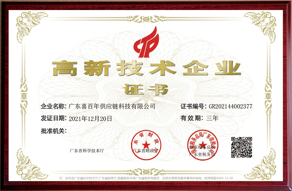 在碳中和与制造业升级,两大时代议题的交织中,打造低碳精益供应链已经势在必行,喜百年供应链科技有限公司成立于2010年,总部位于广东东莞。作为供应链布局变迁的亲历者,将持续赋能全球制造供应链物流服务提质升级,多年来喜百年致力于打造精益供应链管理平台,公司聚焦在新能源及高端制造产业,为客户持续降本增效,现已发展成提供仓运包一体化服务,和精益供应链解决方案的供应链科技企业。集团总投资超10亿元,旗下拥有20多家分子机构,服务网络涵盖全球,喜百年已在全球布局仓库,形成了协同发展的仓库网络,现有大型仓库60余个,仓储面积超50万平米,其中在中国四大电池基地自主投建了宁德、溧阳、荆门三大物流中心,喜百年仓库具备完善的标准化管理,在布局定置目视化管理和5S管理等方面,都达到了高标准管理水平。